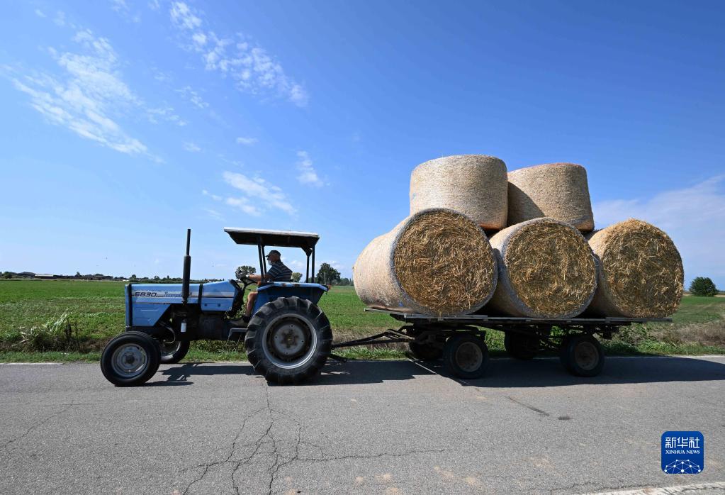 8月12日,在意大利倫巴第大區曼托瓦,農民運送草垛。