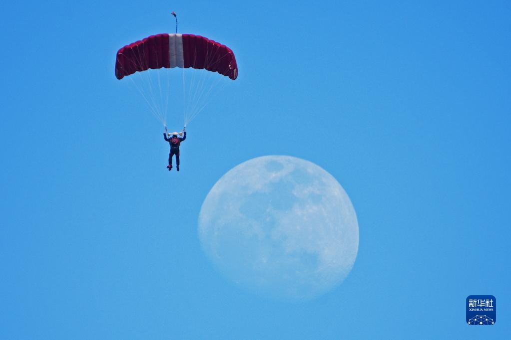 8月9日,紅獅跳傘隊在新加坡濱海灣舉行的國慶慶典上表演高空跳傘。