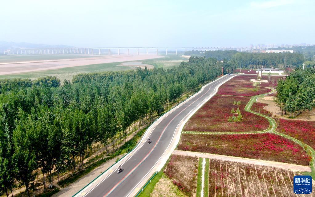 目前,黃河河南段干流右岸生態(tài)廊道已基本貫通,左岸已貫通489公里,累計完成綠化11.27萬(wàn)畝。俯瞰黃河生態(tài)廊道,猶如一條“綠飄帶”沿黃河蜿蜒。