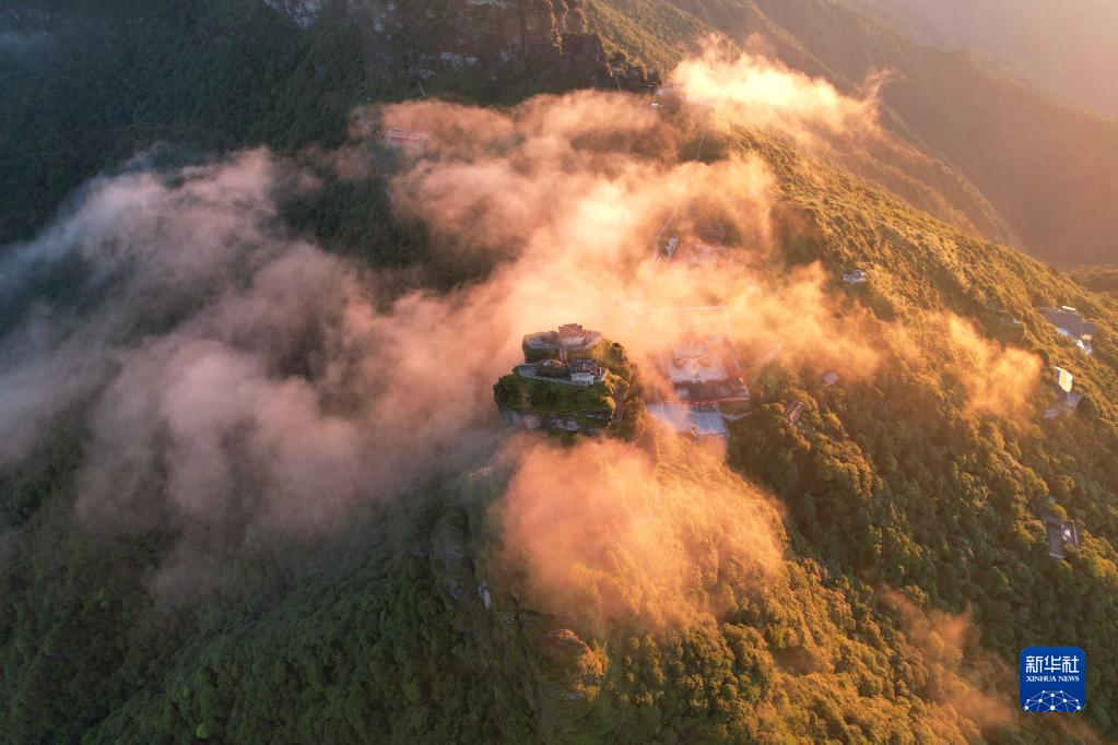 當日,位于貴州省銅仁市的世界自然遺產(chǎn)地梵凈山晨景迷人。
