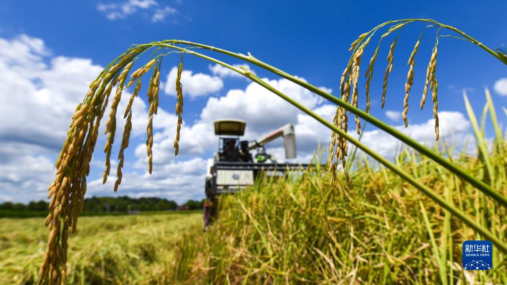 眼下,湖南省常寧市的中稻進(jìn)入收割期。當地農民搶抓晴好天氣忙收獲,確保顆粒歸倉。
