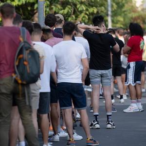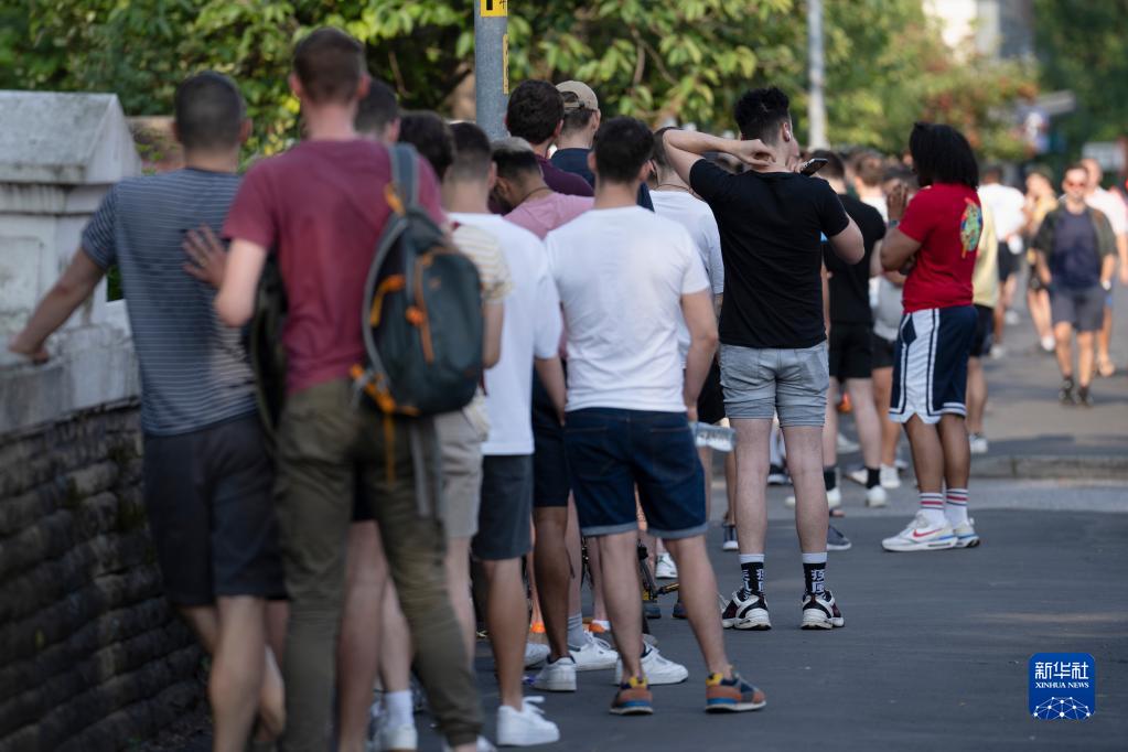8月14日,人們在英國曼徹斯特一處猴痘疫苗接種點(diǎn)外排隊等待接種疫苗。
