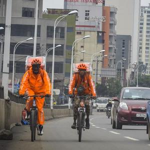 在埃塞俄比亞首都亞的斯亞貝巴,外賣(mài)服務(wù)仍是一項新鮮事物。目前,大約400名外賣(mài)騎手正通過(guò)騎行改變著(zhù)當地送餐方式。