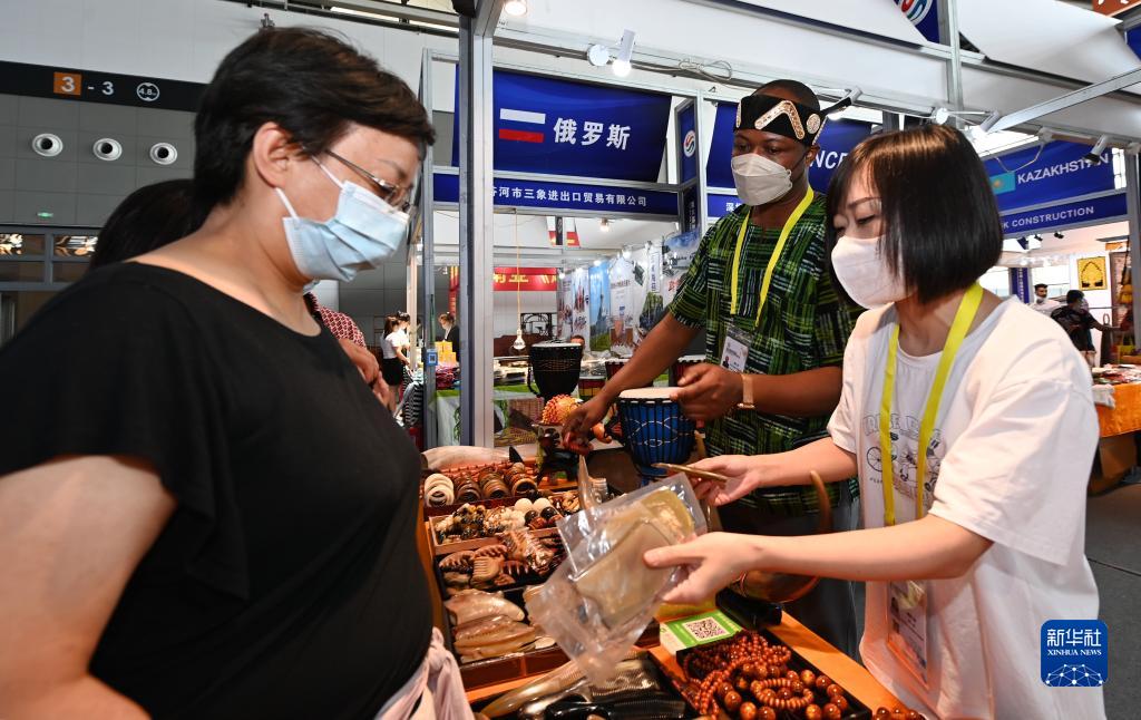 8月14日,參觀(guān)者在西安國際會(huì )展中心國際館加納展位上了解當地特色產(chǎn)品。