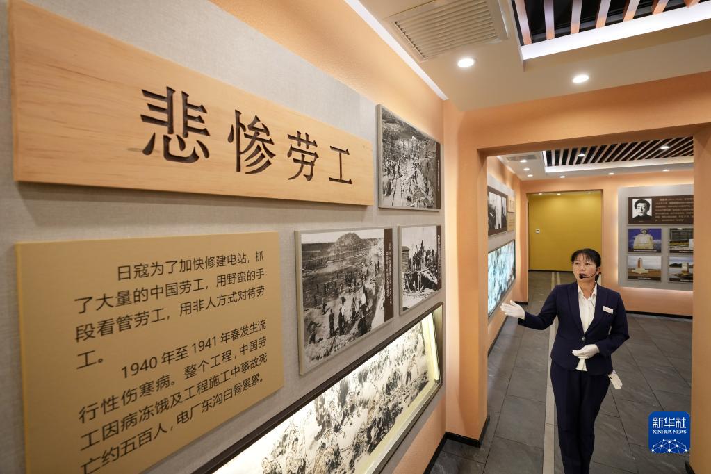 8月11日,在鏡泊湖發(fā)電廠(chǎng)的紅色主題展館內,講解員介紹發(fā)電廠(chǎng)修建期間中國勞工的悲慘境遇。