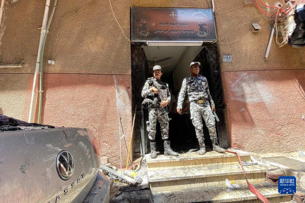 8月14日,在埃及吉薩省,警察在火災現場(chǎng)執勤。