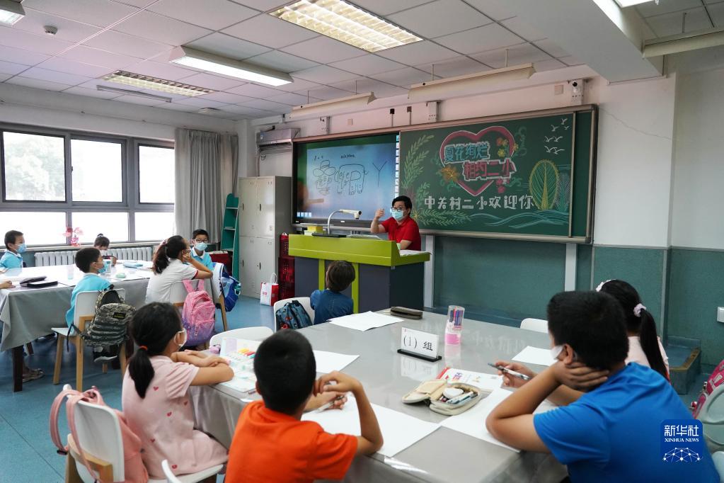 正值暑假,北京市海淀區中關(guān)村學(xué)區組織學(xué)區內的部分小學(xué)承辦2022年中關(guān)村學(xué)區暑期托管服務(wù)工作。來(lái)自學(xué)區內不同小學(xué)的學(xué)生們在托管班中參與益智游戲、體育鍛煉等活動(dòng),度過(guò)愉快而有意義的暑假。
