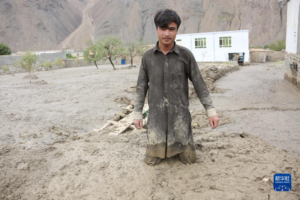 8月15日,在阿富汗東部帕爾萬(wàn)省,一名男子站在洪水中。