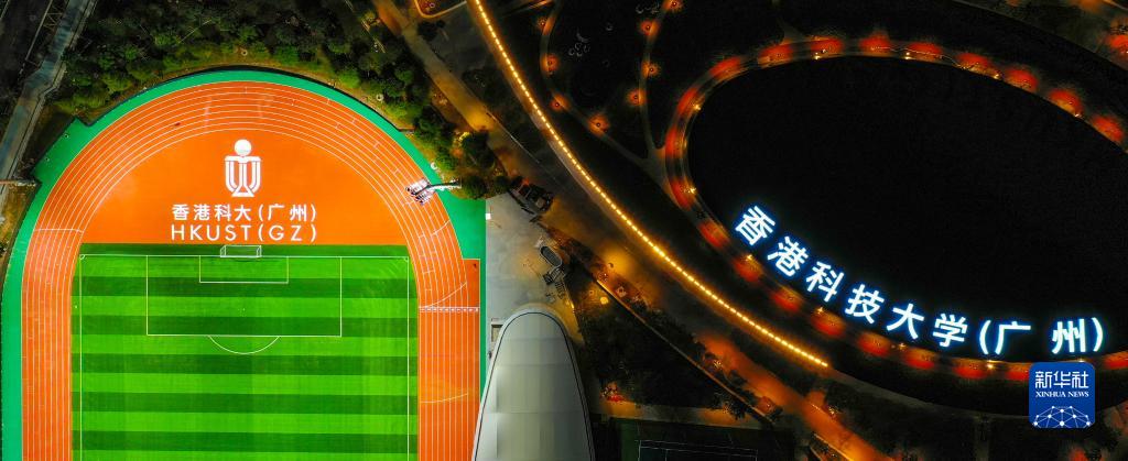 這是香港科技大學(xué)(廣州)體育館和體育場(chǎng)夜景(8月15日攝,無(wú)人機照片)。