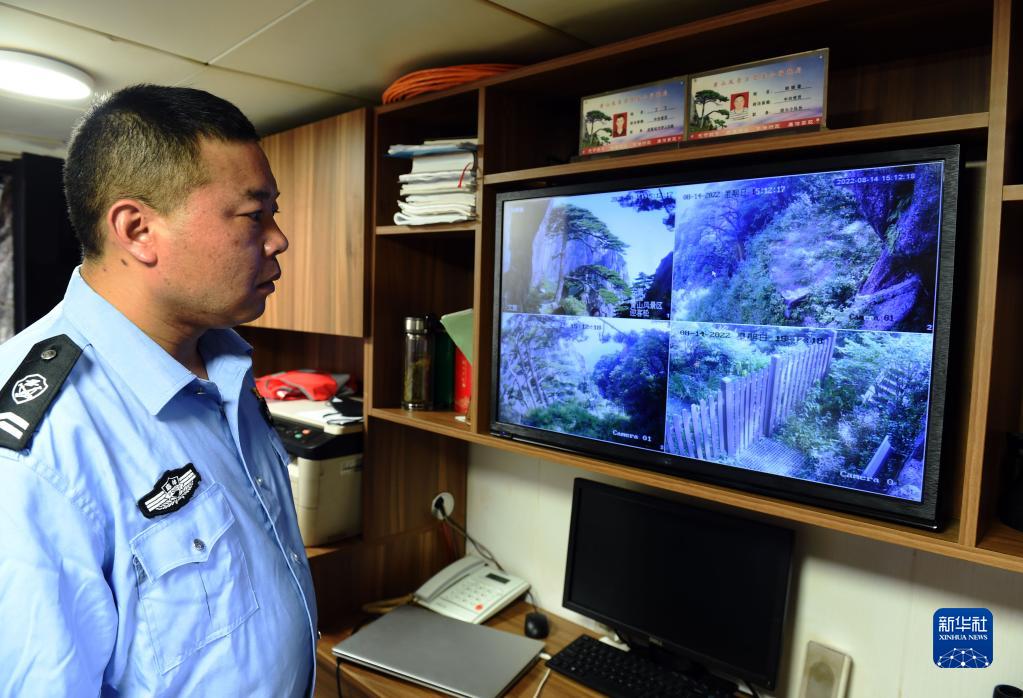 8月14日,胡曉春通過(guò)監控查看迎客松及周邊的情況。