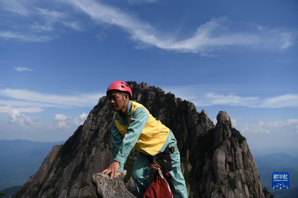 李培生是黃山風(fēng)景區玉屏環(huán)衛所的一名放繩工。他常年攀爬在懸崖峭壁間清理垃圾或幫助游客撿拾失物,在責任區內與同事一起巡查清撿。20多年來(lái),李培生累計放繩長(cháng)度達1800公里,相當于200多座珠穆朗瑪峰的高度。