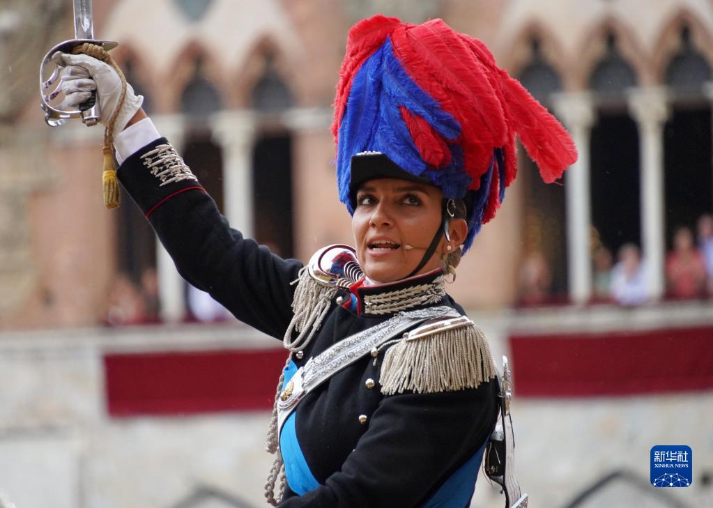 8月16日,意大利憲兵在錫耶納賽馬節上表演。