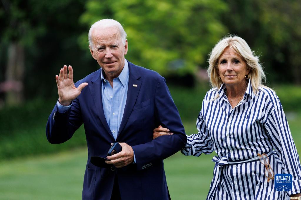 這是8月8日在美國華盛頓白宮拍攝的美國總統拜登(左)和第一夫人吉爾·拜登。