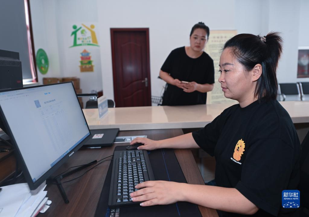 8月17日,在杭州市臨安區玲瓏街道祥里村的便民服務(wù)站,工作人員幫助村民查詢(xún)社保情況?!罢?wù)服務(wù)窗口”已經(jīng)延伸到村里,極大的方便了老百姓。