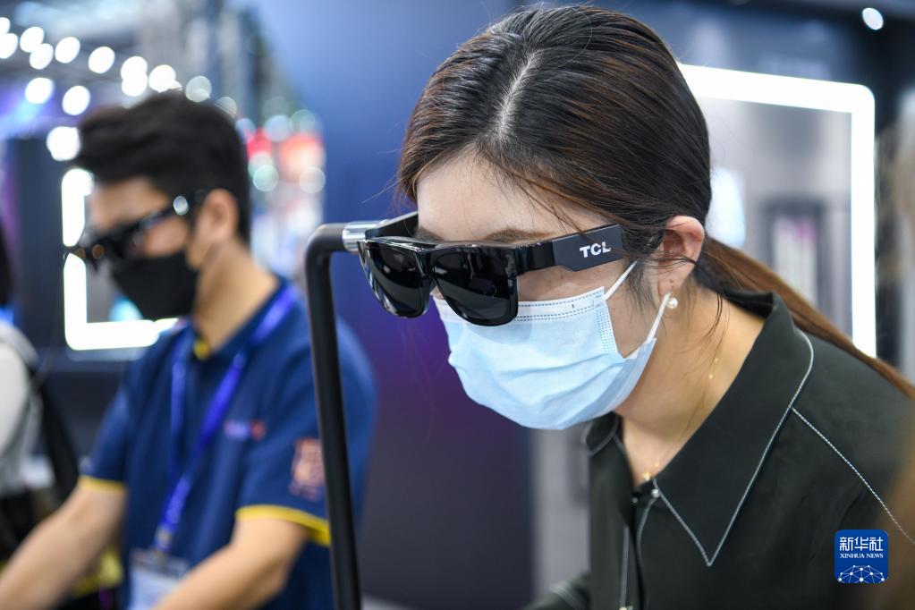 8月17日,在第十屆中國電子信息博覽會(huì )上,觀(guān)眾體驗戴TCL智能眼鏡觀(guān)看視頻。