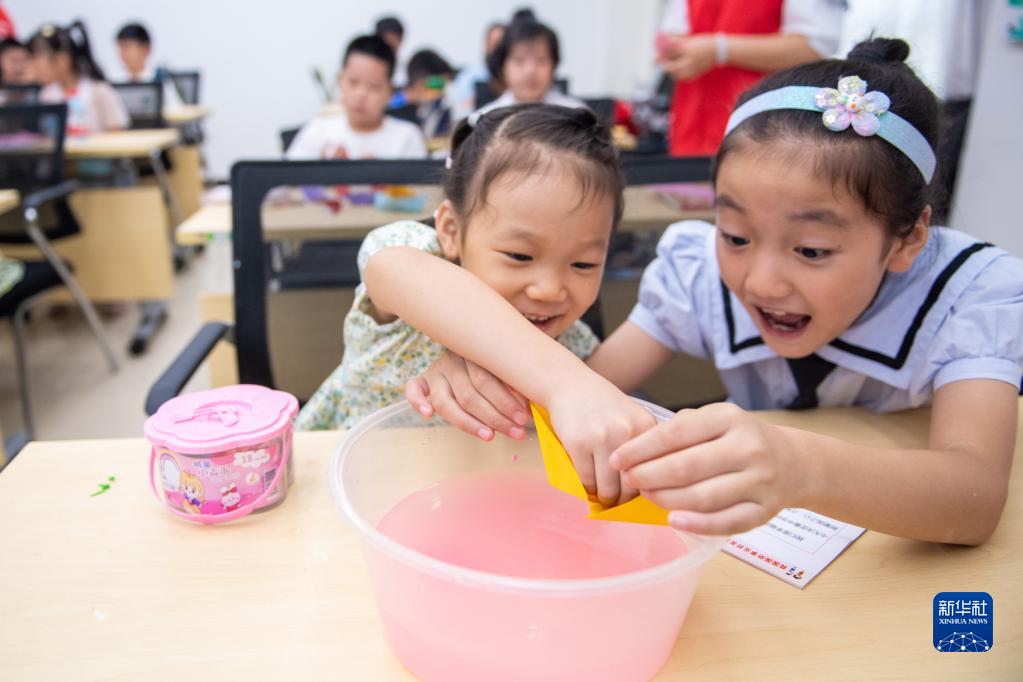 8月17日,在湖南省常德市武陵區芙蓉街道新時(shí)代文明實(shí)踐所活動(dòng)室,學(xué)生在手工課上把折好的紙船放進(jìn)水盆。