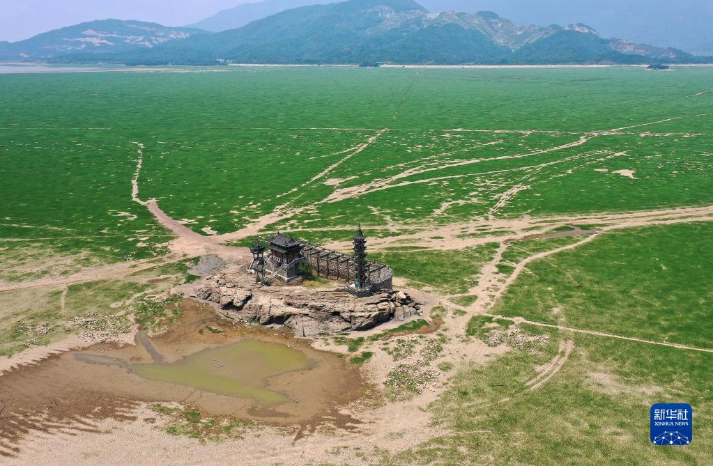 鄱陽(yáng)湖水位下降,湖區的落星墩完全展露出來(lái)(8月17日攝,無(wú)人機照片)。