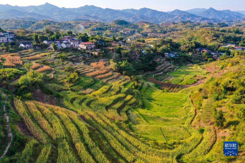 時(shí)下,重慶市北碚區三圣鎮是平村的水稻、高粱等農作物相繼進(jìn)入成熟期。稻田、高粱地、玉米地、民居等相映成趣,美如畫(huà)卷。