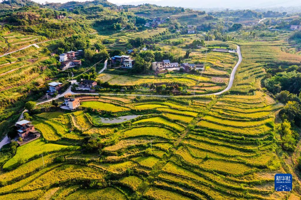 時(shí)下,重慶市北碚區三圣鎮是平村的水稻、高粱等農作物相繼進(jìn)入成熟期。稻田、高粱地、玉米地、民居等相映成趣,美如畫(huà)卷。