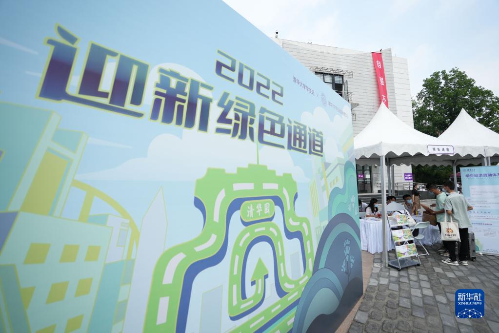 8月17日,在清華大學(xué)迎新點(diǎn)設立的迎新“綠色通道”處,學(xué)校工作人員為有需要的新生辦理無(wú)息臨時(shí)借款。