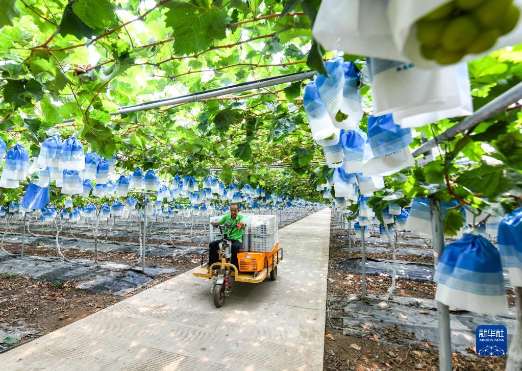 當日,四川省眉山市彭山區葡萄種植基地內一派忙碌,工人將葡萄采摘、稱(chēng)重、套袋、裝箱,運往各地市場(chǎng)。據了解,當地應用數字化大棚技術(shù),通過(guò)智能化管理系統,能有效緩解連日來(lái)高溫天氣對葡萄產(chǎn)生的不利影響,實(shí)現穩產(chǎn)穩收。