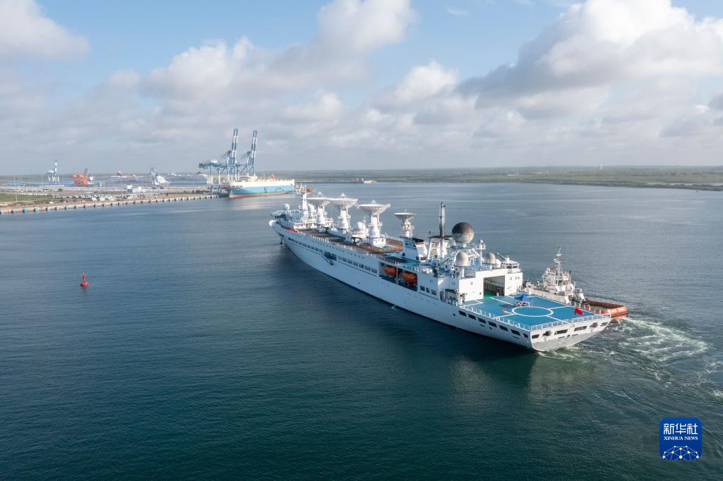 中國遠望5號船16日??克估锾m卡南部漢班托塔港,進(jìn)行物資補給。中國駐斯大使戚振宏和斯政府官員、中資機構代表等在碼頭迎接。