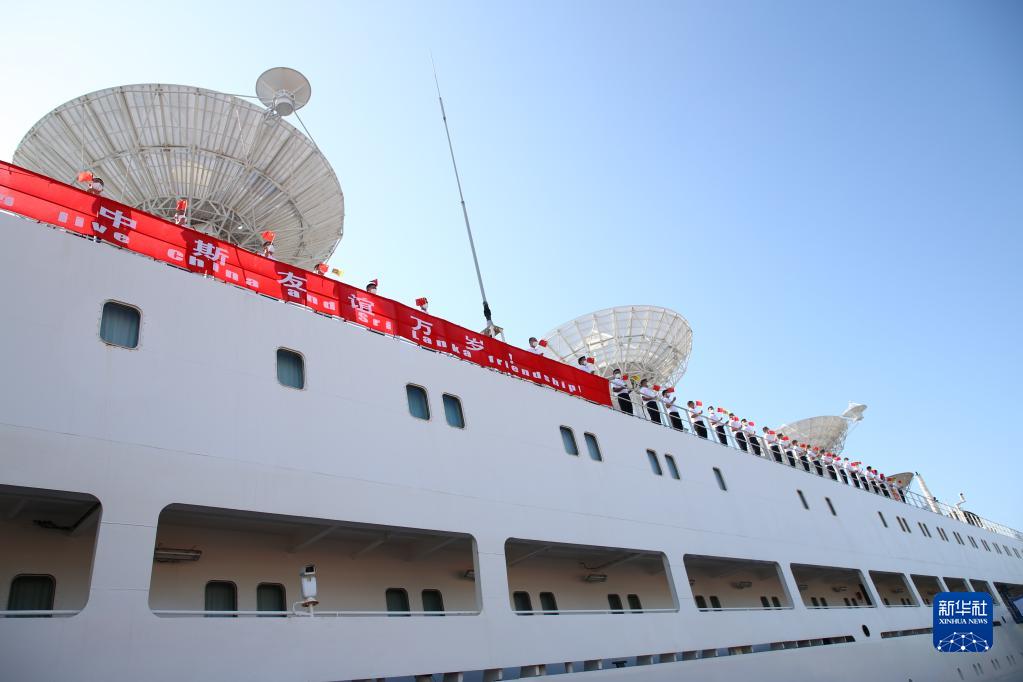 中國遠望5號船16日??克估锾m卡南部漢班托塔港,進(jìn)行物資補給。中國駐斯大使戚振宏和斯政府官員、中資機構代表等在碼頭迎接。