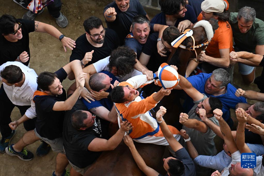8月17日,獲勝騎手和支持者在意大利錫耶納慶祝勝利。