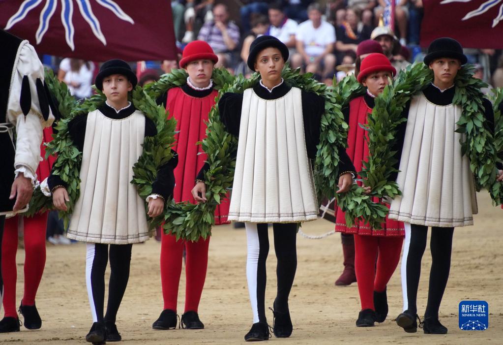 8月17日,表演者參加意大利錫耶納賽馬節古裝巡游。