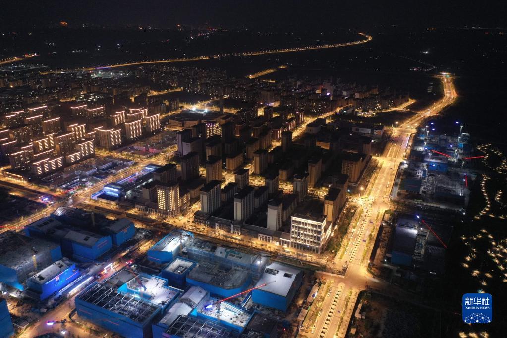河北雄安新區容東片區及雄安·電建智匯城建設項目夜景(8月17日攝,無(wú)人機照片)。