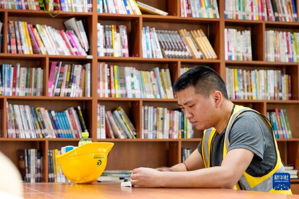 8月17日,重慶市九龍坡區謝家灣街道萬(wàn)象城的工會(huì )戶(hù)外勞動(dòng)者服務(wù)站內,一名建筑工人在服務(wù)站圖書(shū)角看書(shū)。