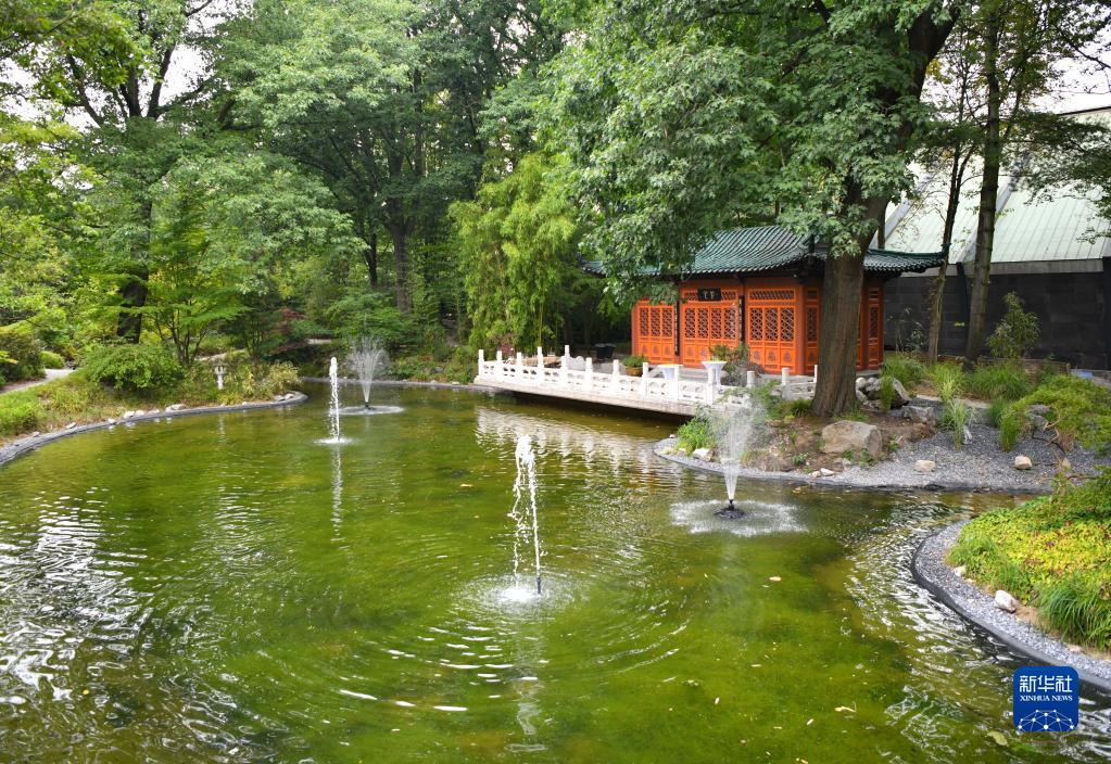 在中德兩國專(zhuān)家為期數月的全面修繕下,坐落在德國杜伊斯堡市動(dòng)物園內的中國園林郢趣園17日重新開(kāi)放,迎接游客到來(lái)。