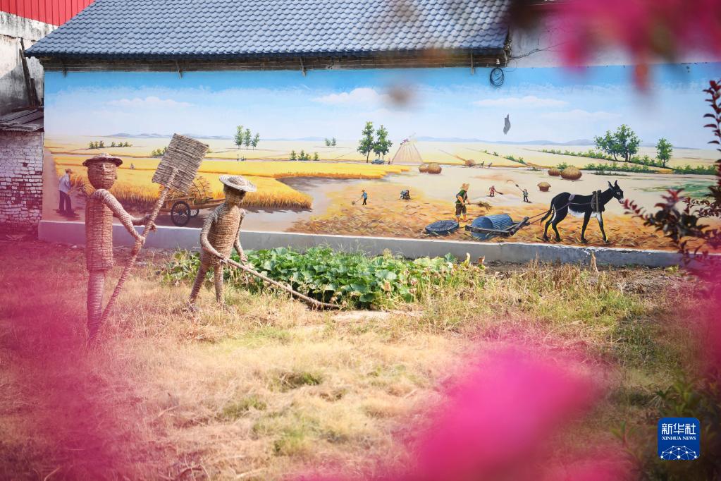 這是8月17日在河南省漯河市舞陽(yáng)縣九街鎮胡崗村拍攝的農民畫(huà)墻畫(huà)。