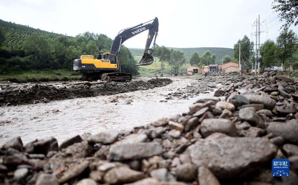 8月18日,挖掘機在青海省西寧市大通回族土族自治縣青山鄉沙岱村疏通河道。