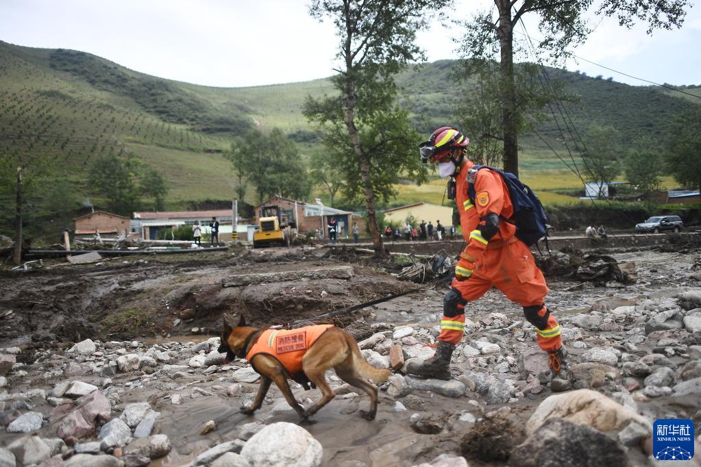 8月18日,消防隊員在青海省西寧市大通回族土族自治縣青山鄉沙岱村開(kāi)展搜救。