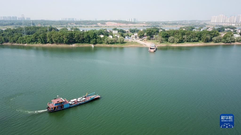 8月17日,村民搭乘輪渡前往興馬洲(無(wú)人機照片)。