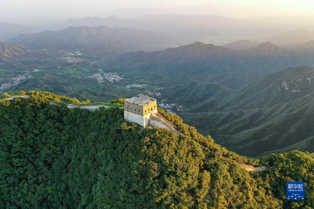 夕陽(yáng)下的箭扣長(cháng)城“正北樓”(8月16日攝,無(wú)人機照片)。