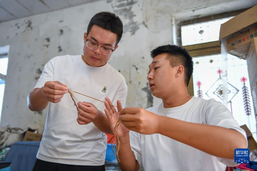 8月17日,沙野(左)和崔帥觀(guān)察玉米根須樣本。