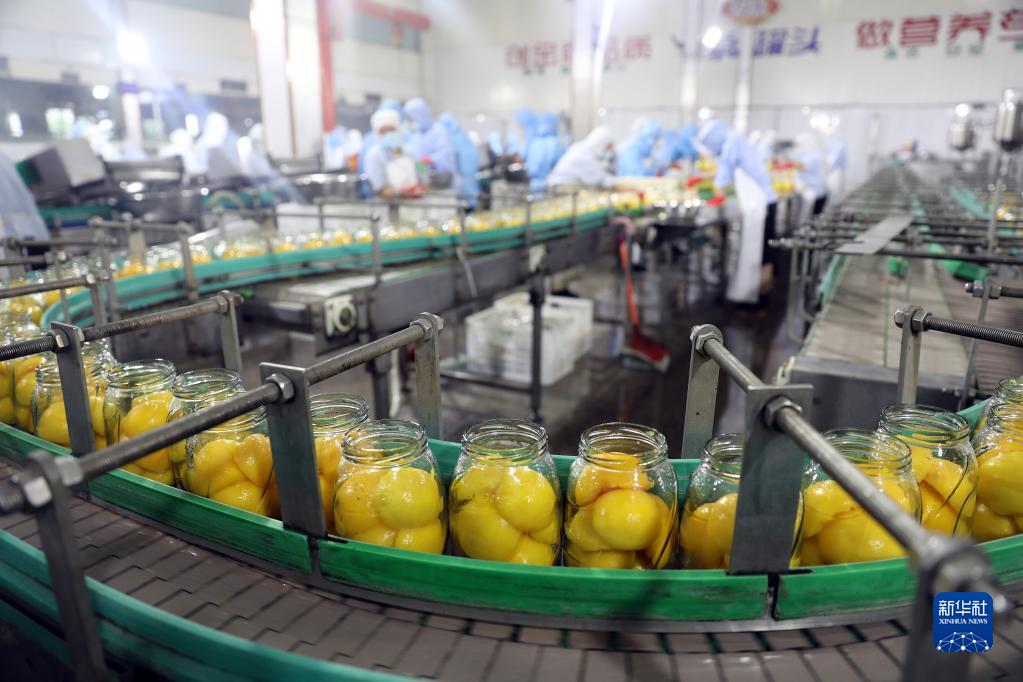 8月18日,在河北華泉食品有限公司生產(chǎn)車(chē)間,工人在制作黃桃罐頭。