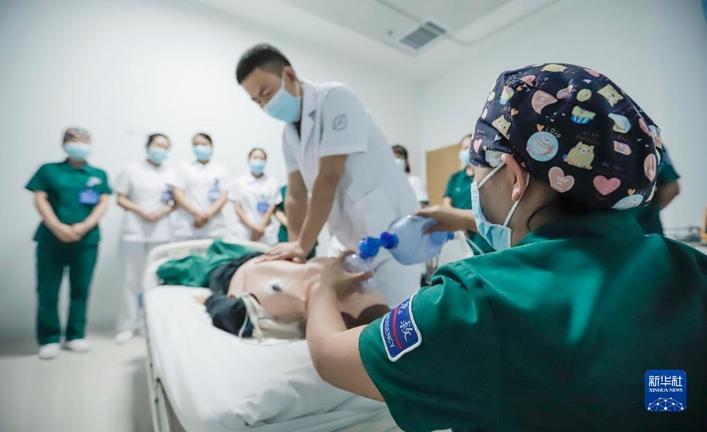 8月18日,河北省遵化市中醫醫院的醫生在參加急救技能比賽。
