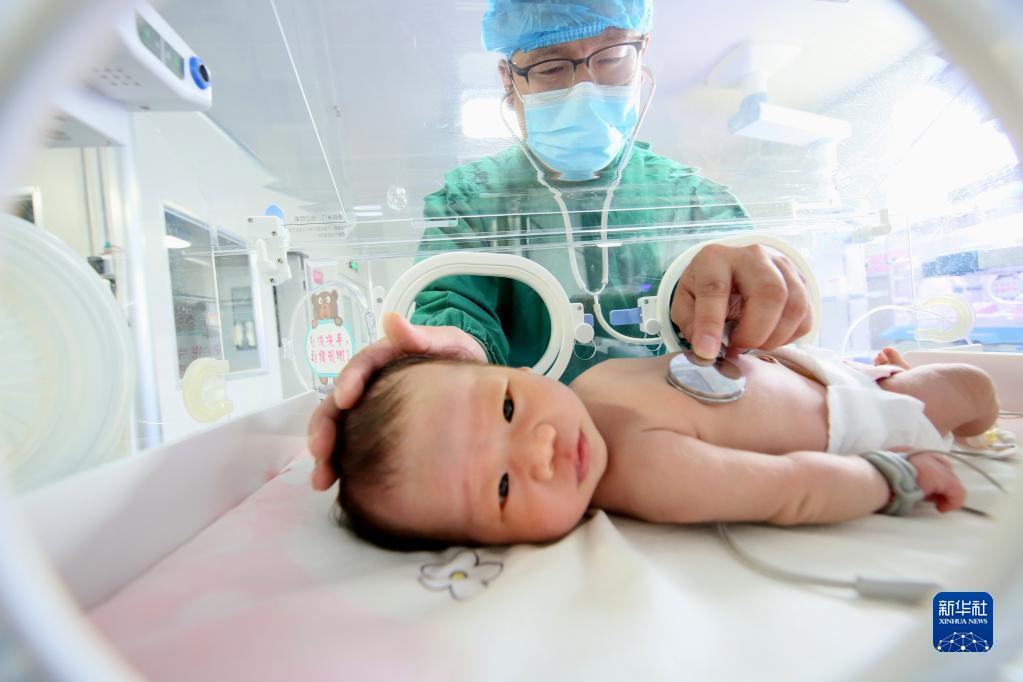 8月18日,河南省洛陽(yáng)市汝陽(yáng)縣婦幼保健院醫生在新生兒監護室工作。