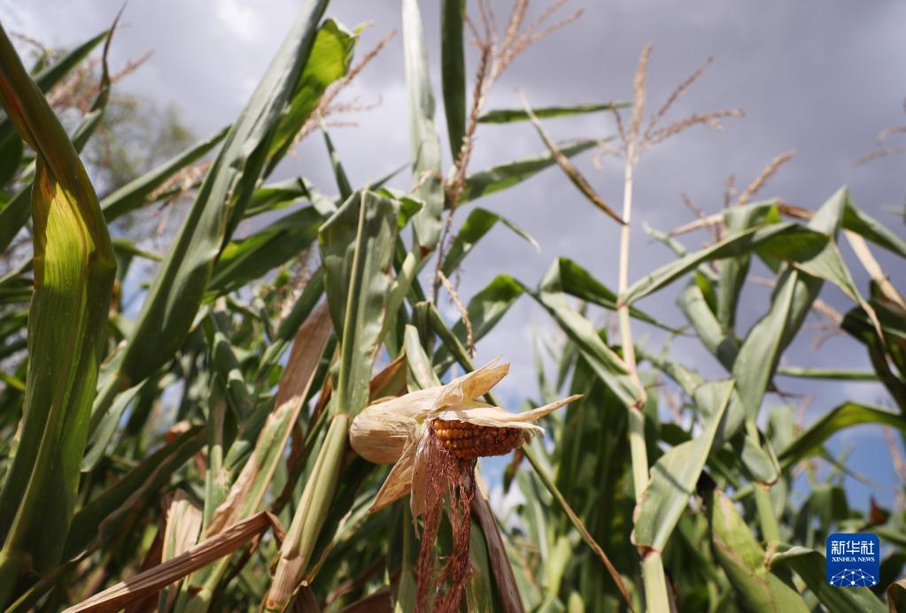 這是8月18日在法國巴黎西北約30公里處的皮伊塞-蓬圖瓦茲拍攝的受旱情影響的玉米田。