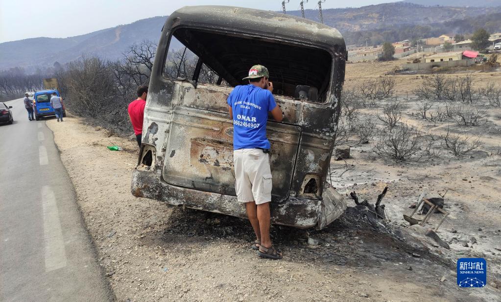 8月18日,在阿爾及利亞泰賴(lài)夫省,車(chē)輛被森林火災焚毀。