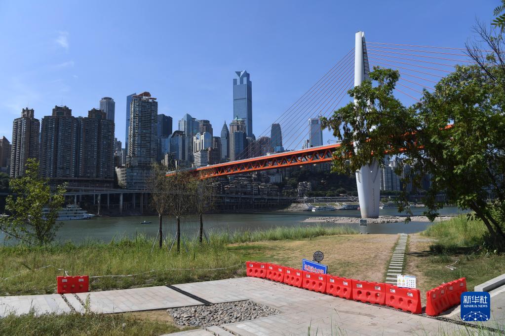 這是8月17日拍攝的重慶嘉陵江江北江灘公園一帶景象。提前布置好的防汛相關(guān)設施沒(méi)有派上用場(chǎng)。