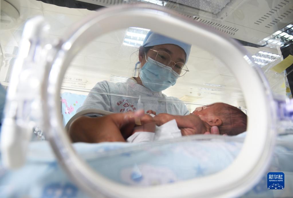 8月19日,在云南省麗江市人民醫院,醫務(wù)人員對新生兒進(jìn)行護理。
