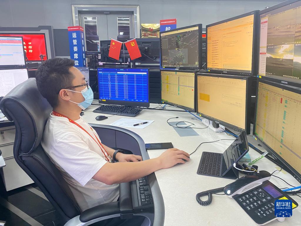 8月15日,??诿捞m國際機場(chǎng)的服務(wù)專(zhuān)員在機場(chǎng)運控大廳內處理航班計劃與運行協(xié)調事項。