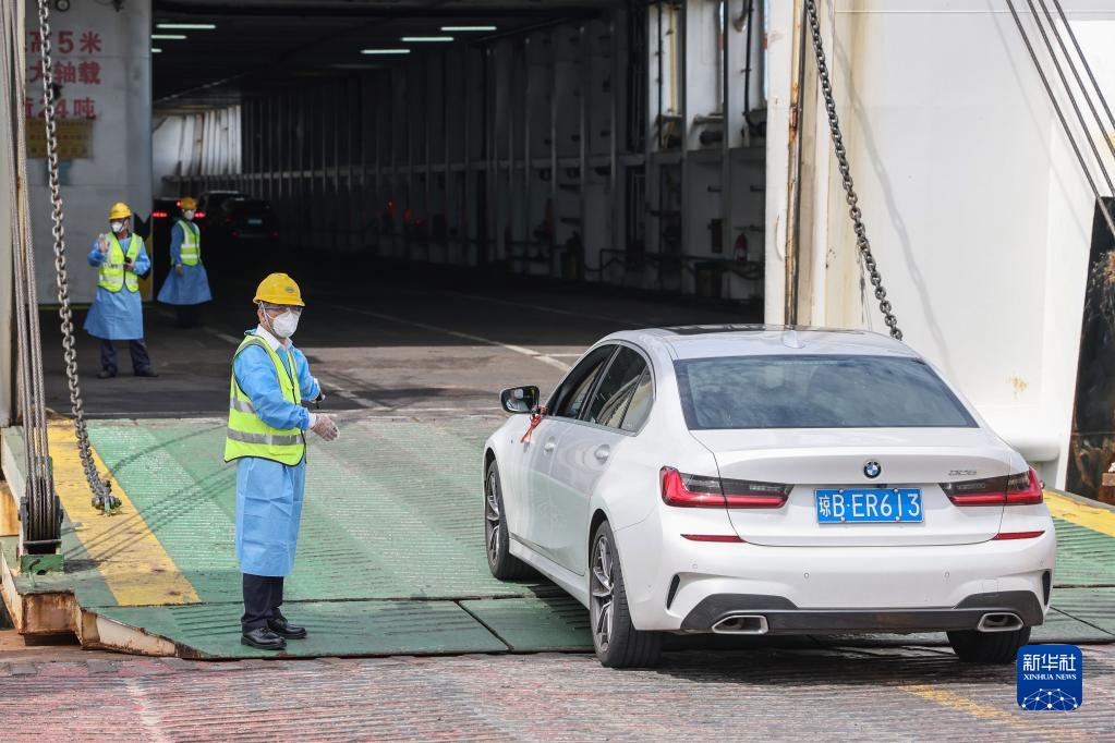 8月16日,??谛潞8鄣姆?wù)專(zhuān)員引導滯留旅客的自駕車(chē)輛登船。