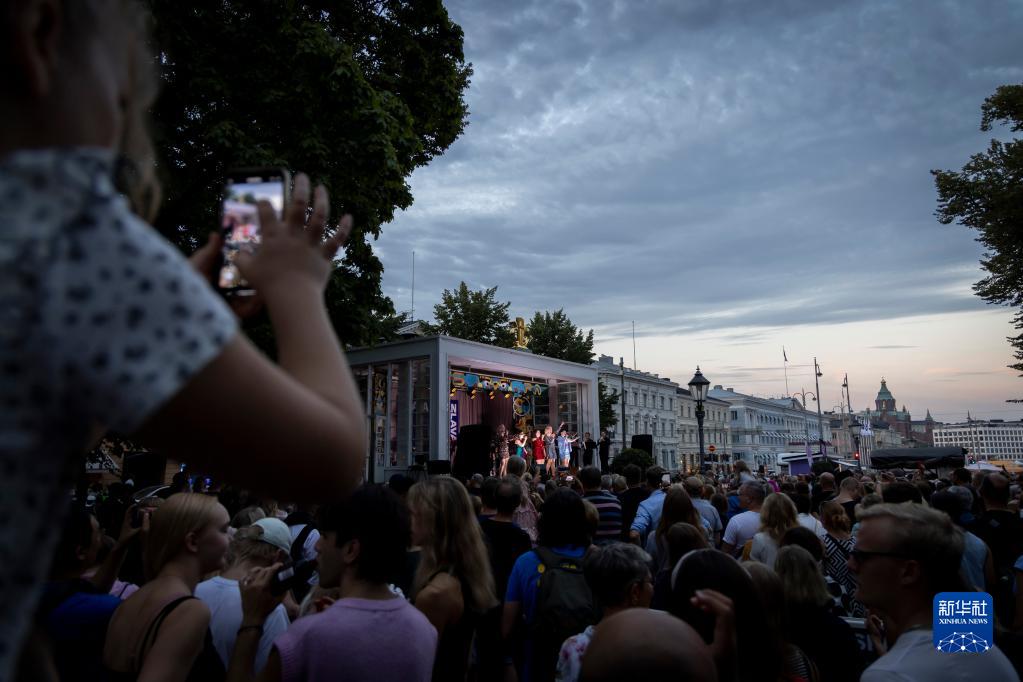 8月18日,在芬蘭赫爾辛基,人們在公園內觀(guān)看演出。