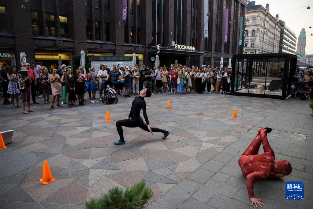 8月18日,人們在芬蘭赫爾辛基街頭觀(guān)看現代舞表演。
