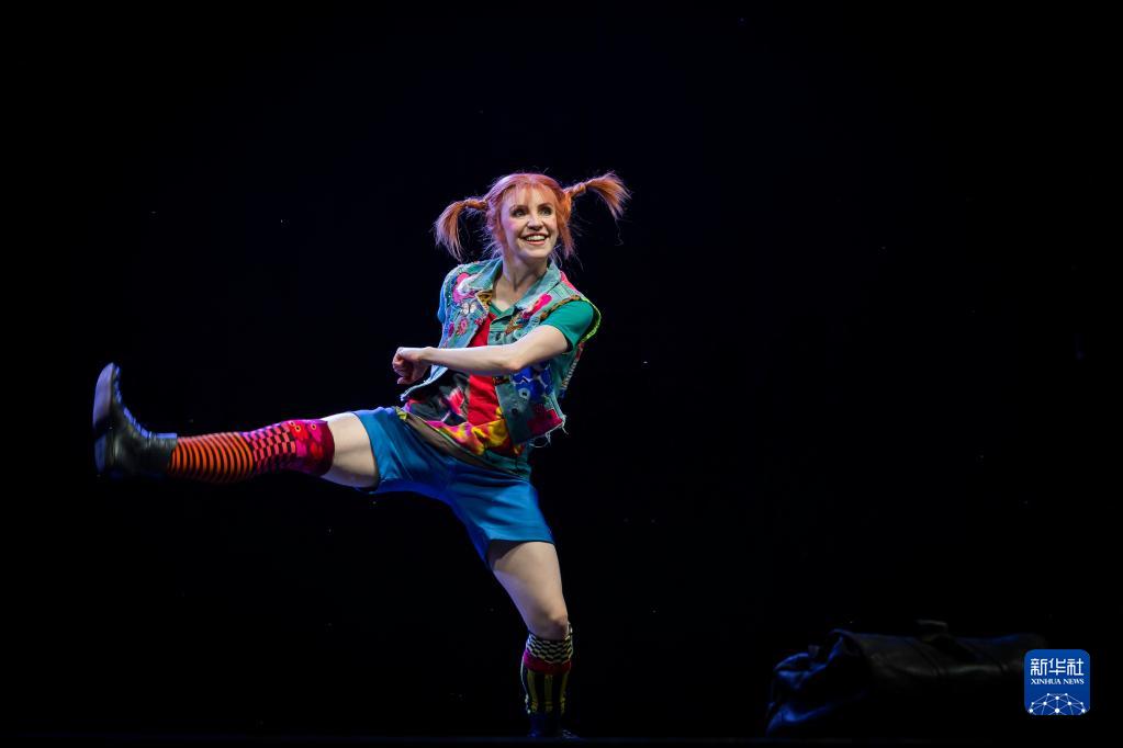 8月18日,芬蘭國家芭蕾舞團在芬蘭赫爾辛基街頭為觀(guān)眾表演《長(cháng)襪子皮皮》。